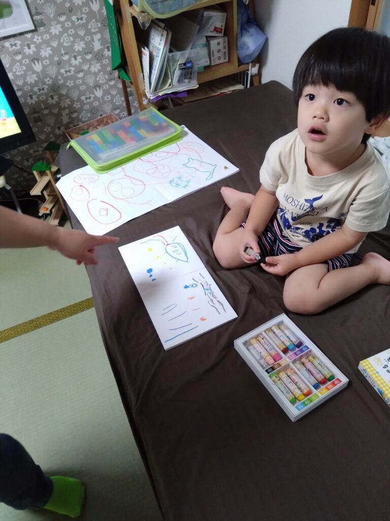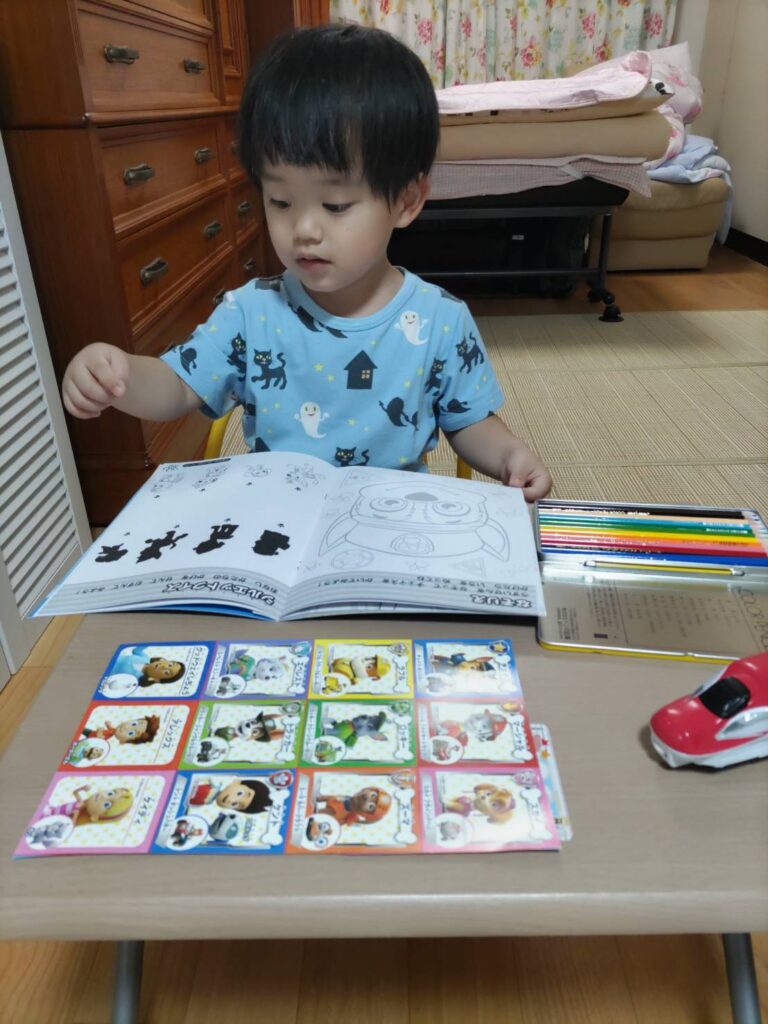 8/19(火) 夕食後の端末のゲームを、強制終了したのを根に持って、パパとのぬーぬーを拒否する友李くん。ハーミーも読み聞かせもママ〜って言って、たまにはいいかな、楽できるし(*´ω`*)