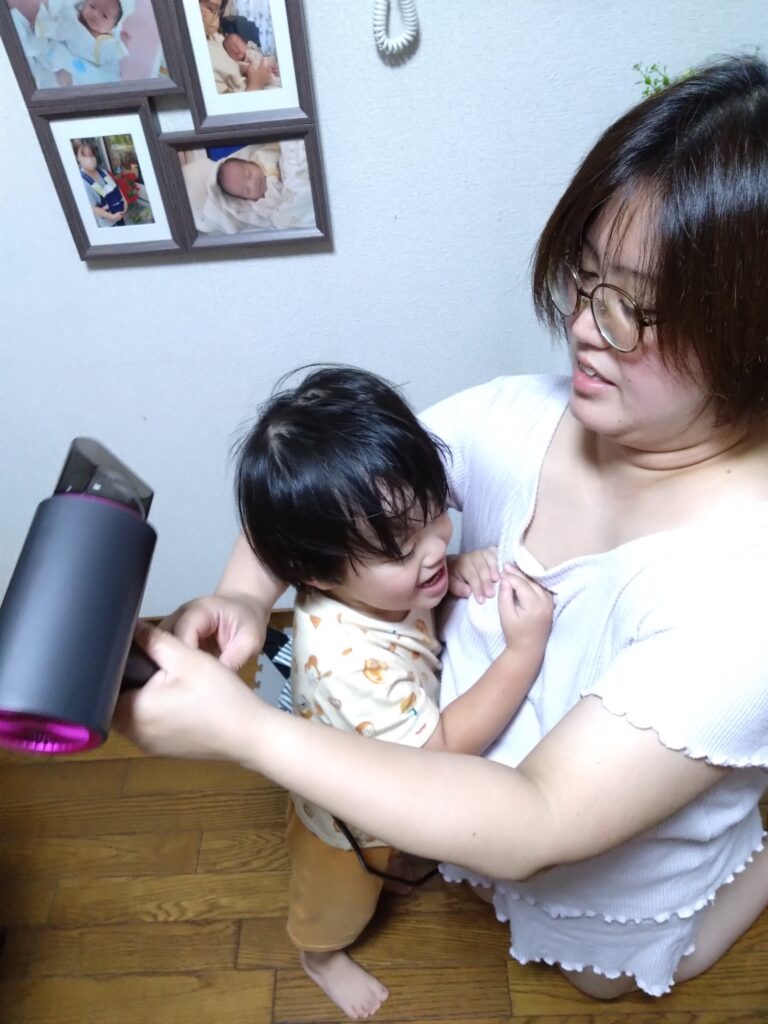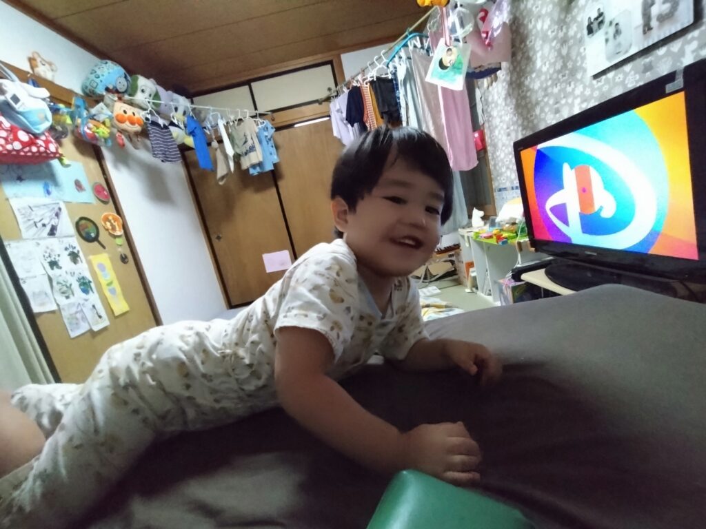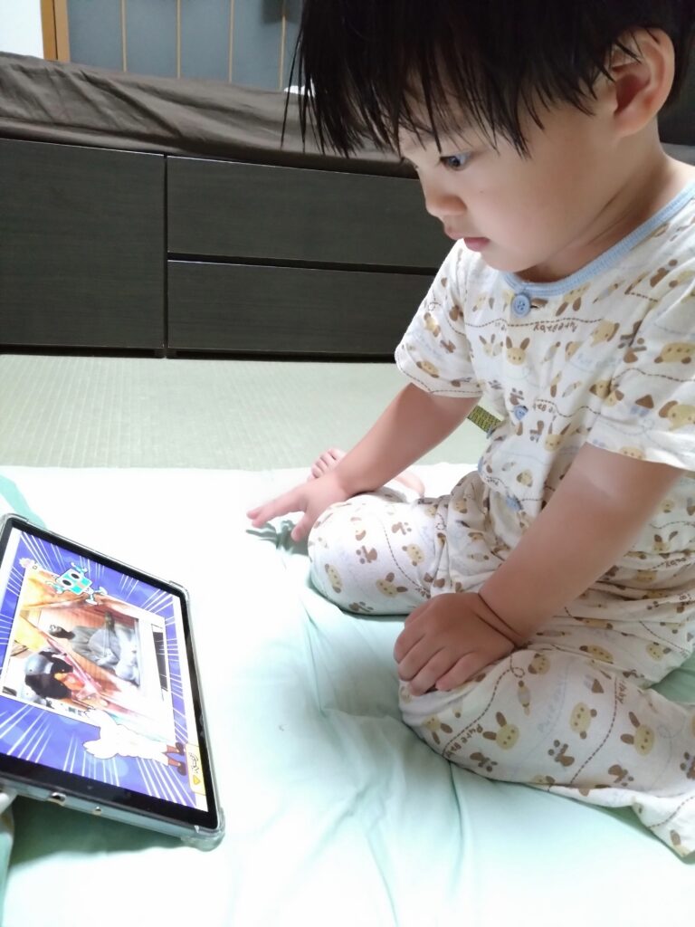 お風呂上がり、ママはタブレットを使いながら、トトロの曲を2、3曲友李くんに歌い聞かせしてあげていました。とても素敵でした✨友李くんは踊ったりもしていましたが、とても興味深そうに、YouTubeを見ていました(* ‘ᵕ’ )☆