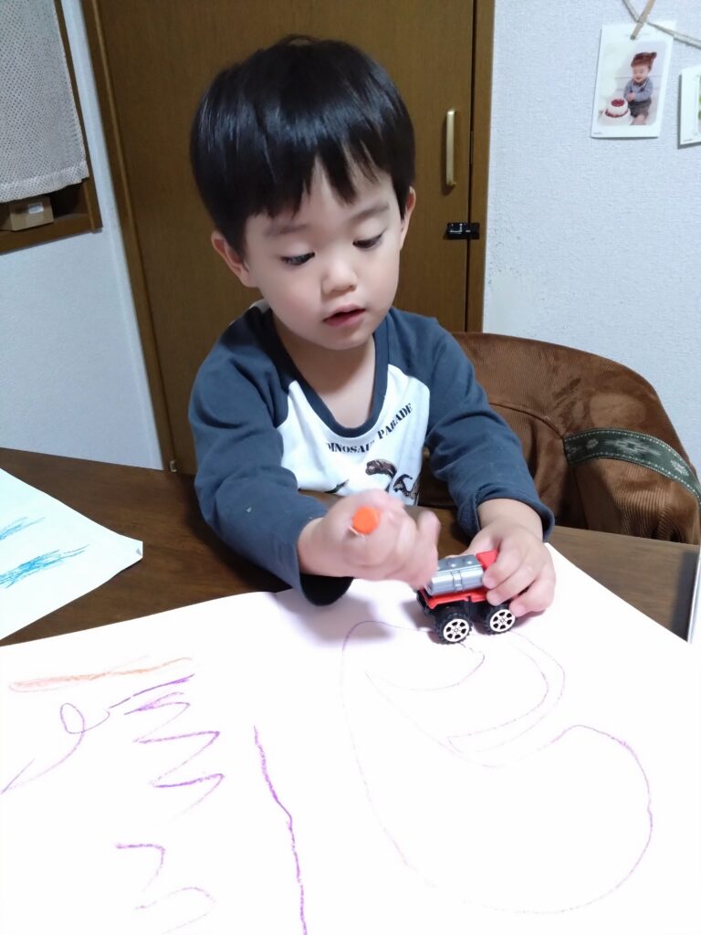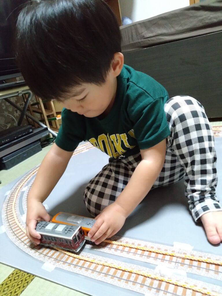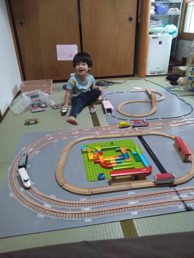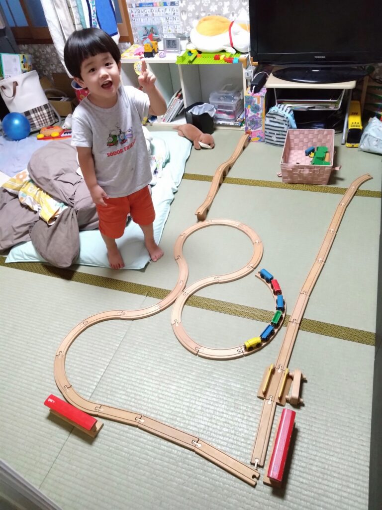 ある程度パパが誘導して作った、コースで遊ぶ友李くん。