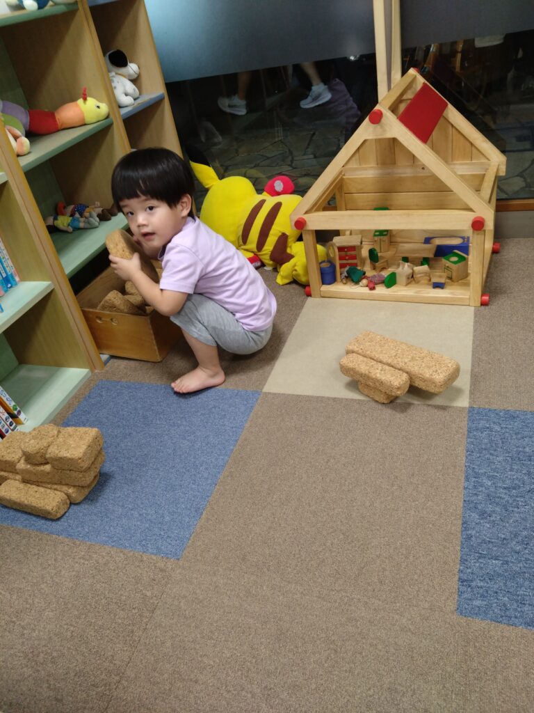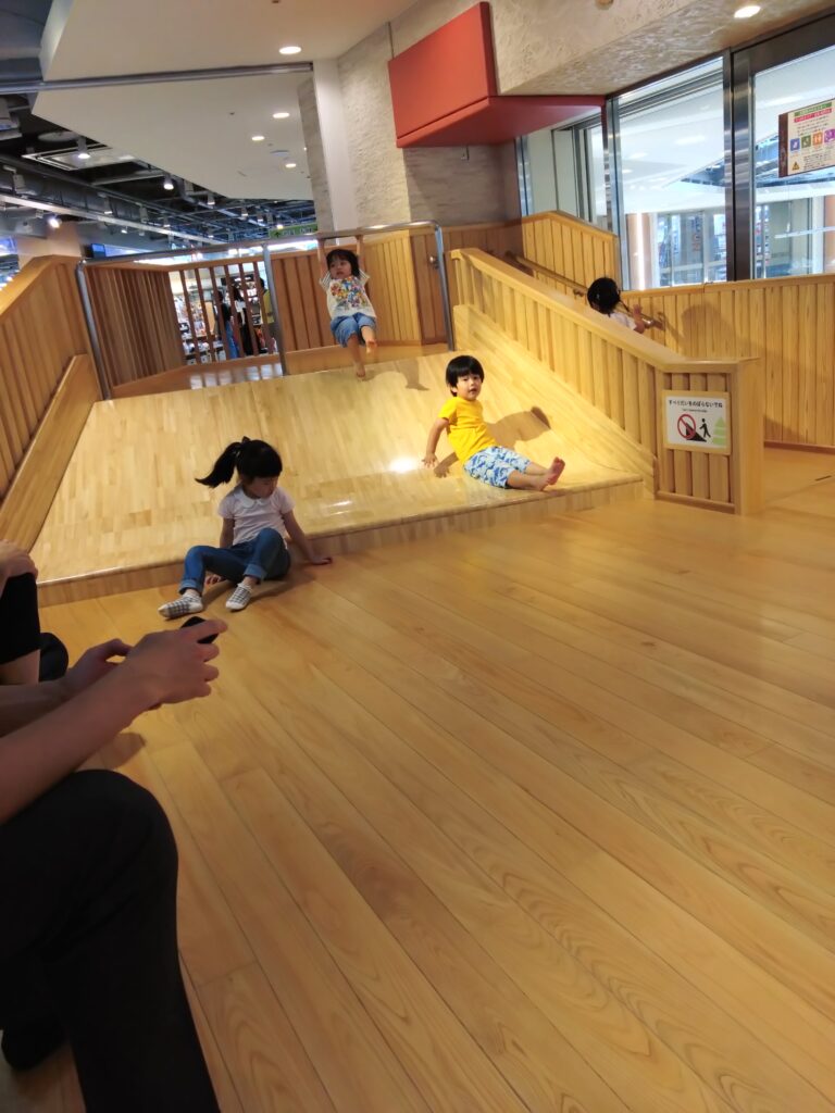 木育コーナー?ができていました。じょうずに坂滑りが出来ていました👏