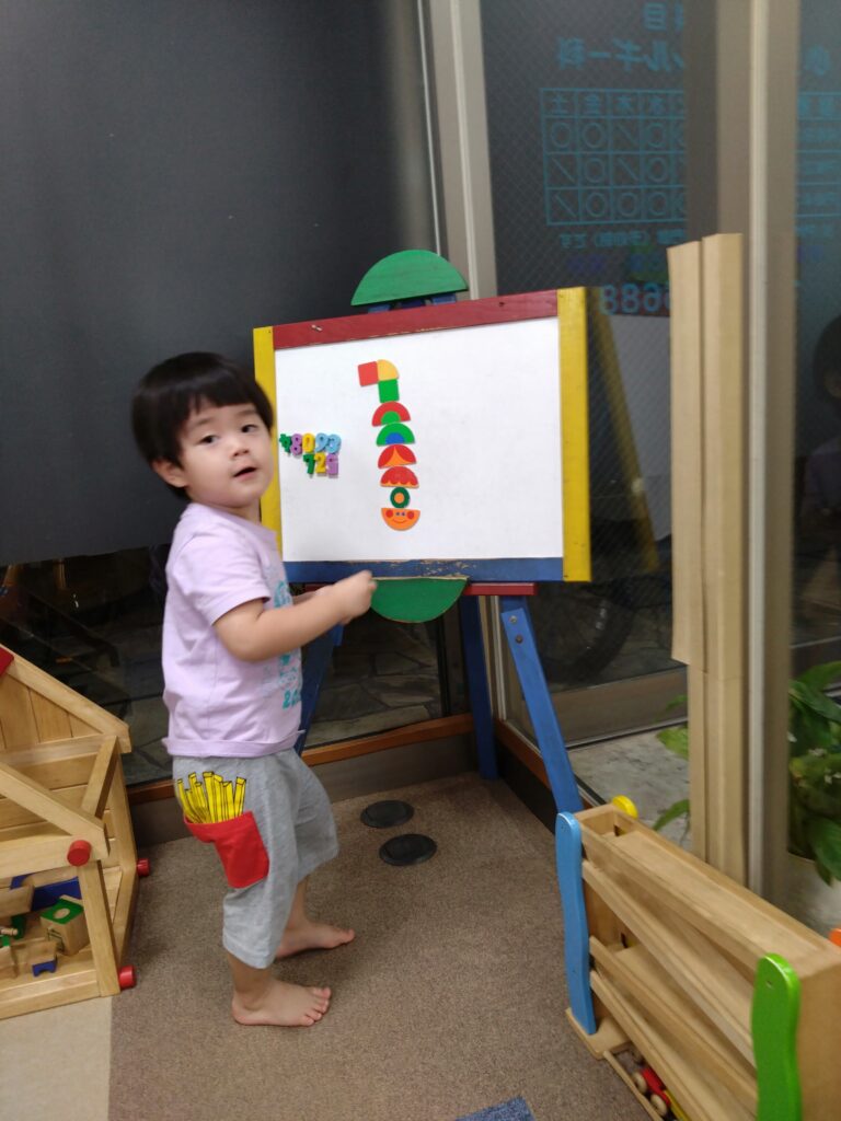 いつものおもちゃコーナーでパシャリ📸他のお友達と交代ばんこに遊べて偉かったね!