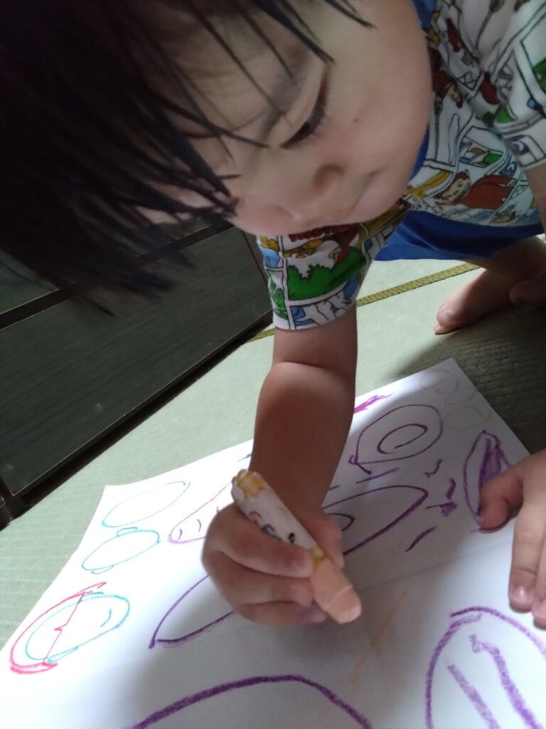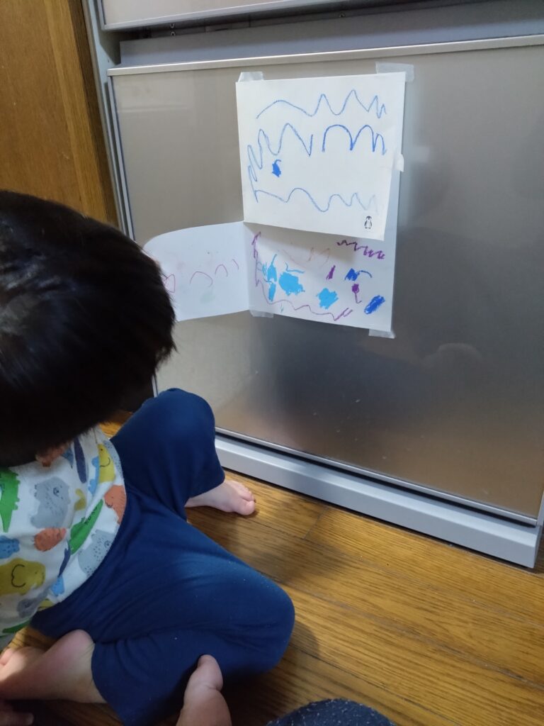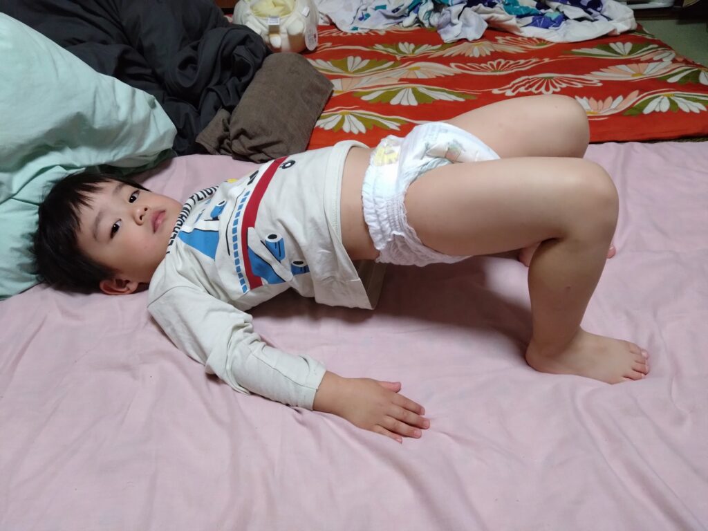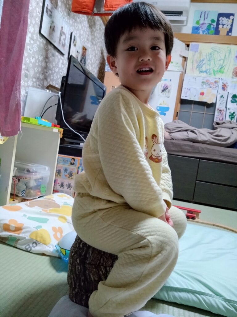💩が出てないので、寝る前恒例のぬーぬータイム。野菜の栄養が足りてないかなぁ。でも園では切り干し大根食べたそうです💮