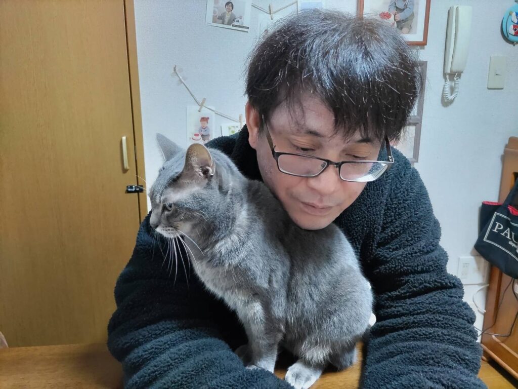 家に帰って、久しぶりに2階に行きました。ミミちゃんを優しく撫でる友李くん。
