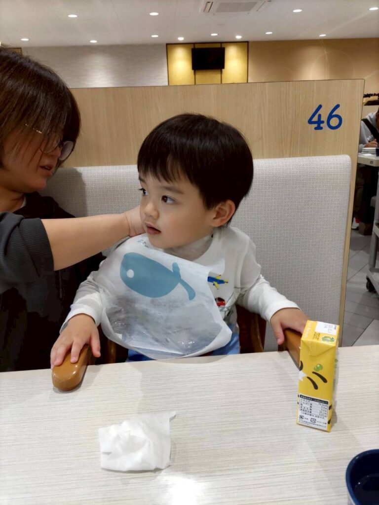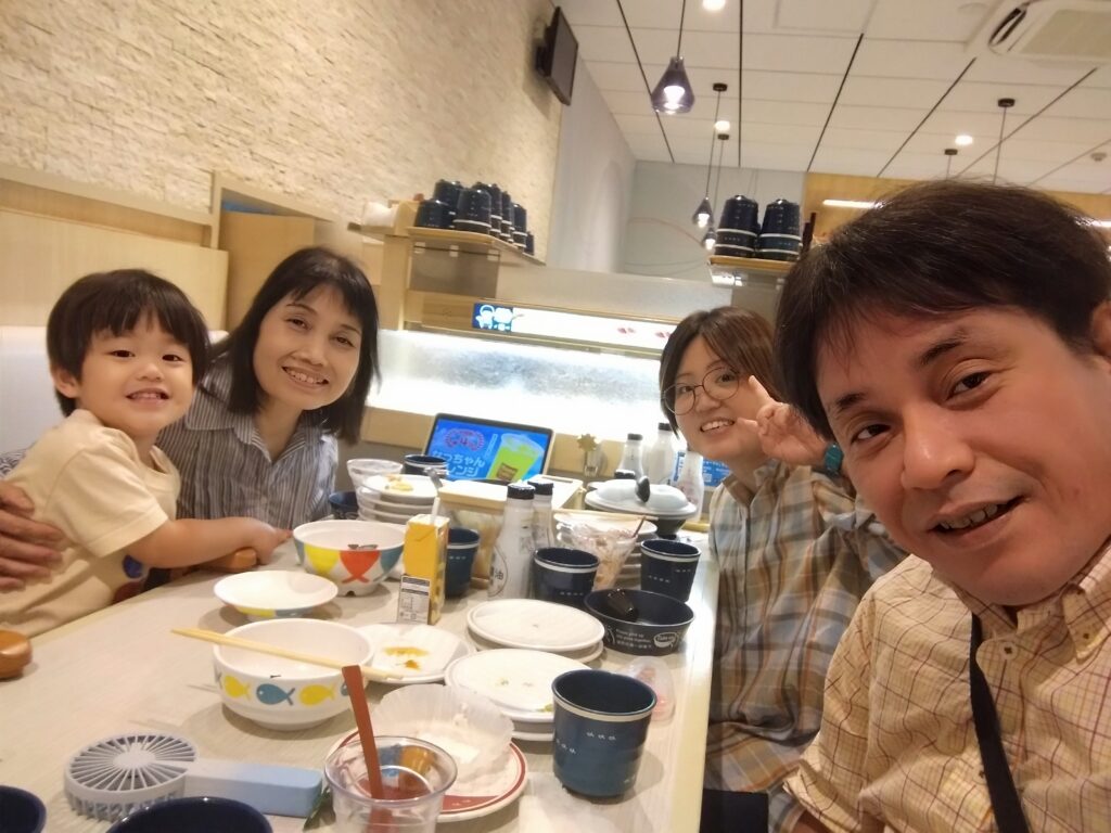 昼間は友李くんを退屈にさせてしまったので、夜ははま寿司にご飯を食べに行ったよ。