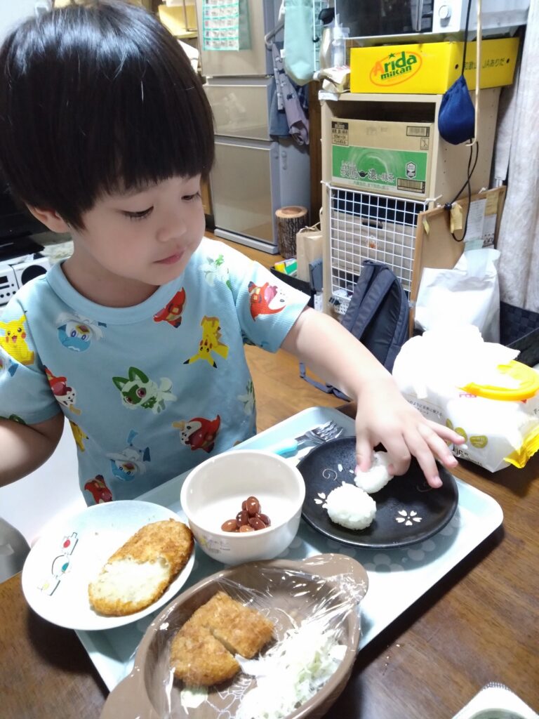 8/8(金) 晩御飯にママがカレーを作ってくれました。そして、友李くんはパクパクカレーを食べてくれました。これは吉兆!?🦚🌈