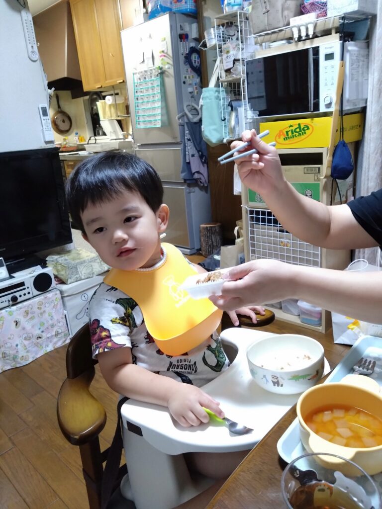 8/26(火) 晩御飯で切り干し大根をパクパク(๑´ㅂ`๑)。偏食に対する成長が見られるようになりました😊