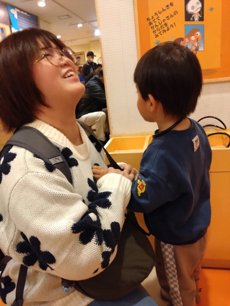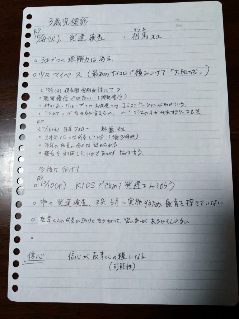 11/10(月) 今日は、朝から区役所に行って、はぐくみ室の貞本さんと、障害福祉課の西村さんと途中から心理士の相馬さんとママと5人で話をしてきました。