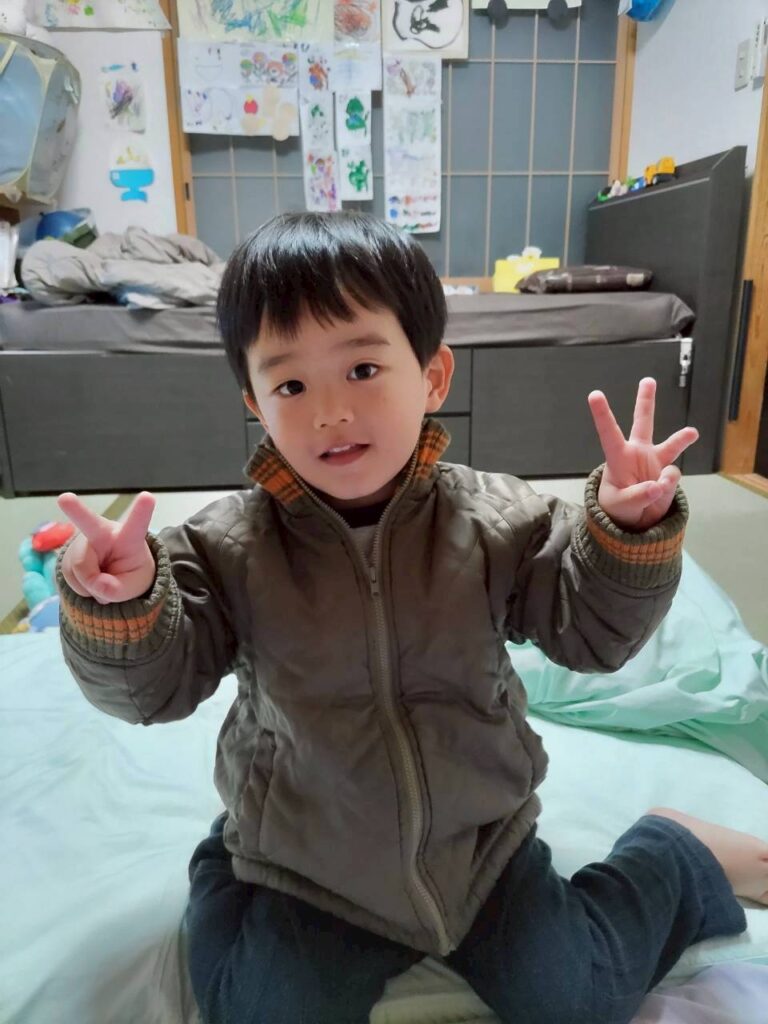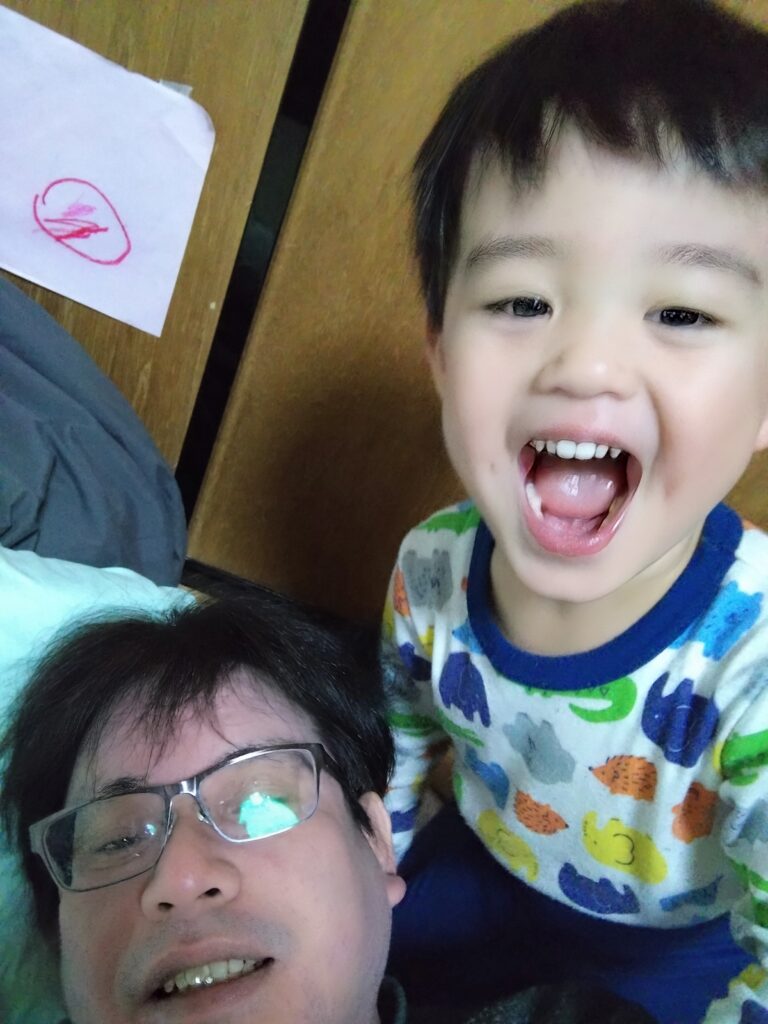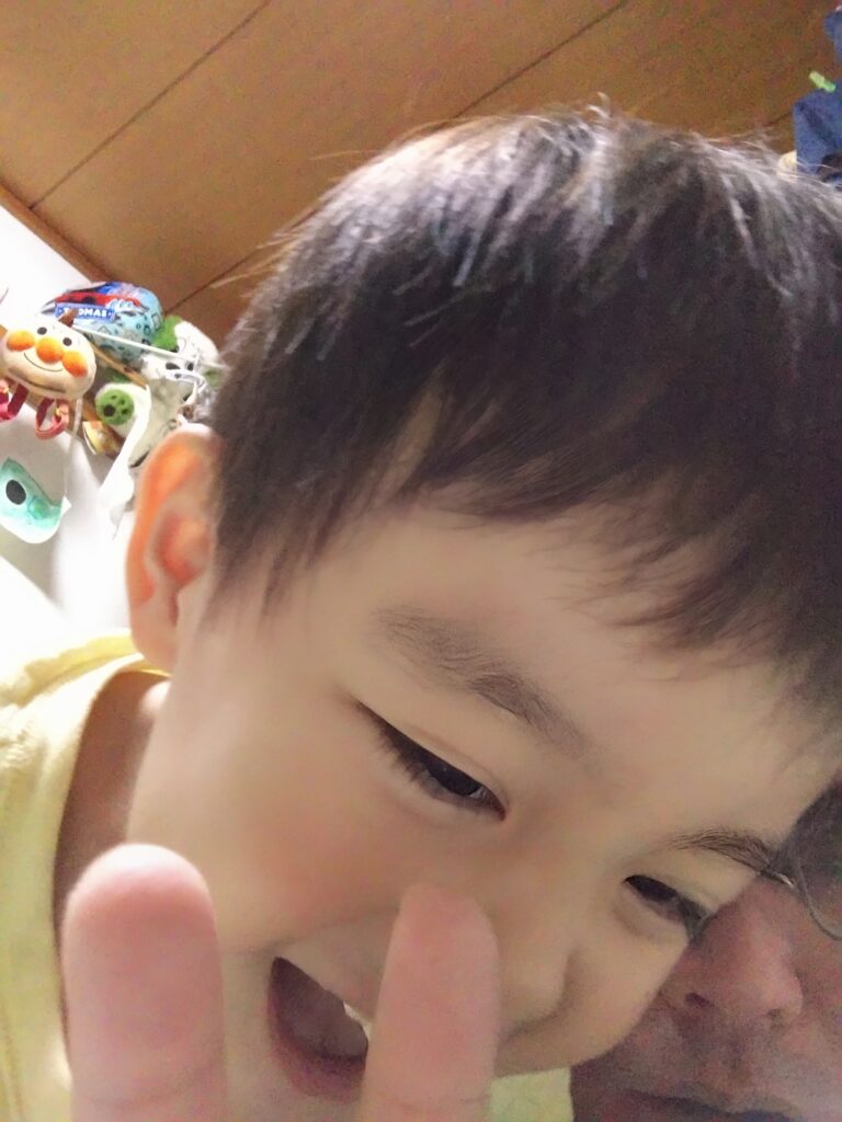 今日はいつもより暴力的な面が強く出ていた友李くん。寝ているパパのお腹に不意に思い切り!?頭突きをされて痛かったです。怒る元気も出ませんでした。