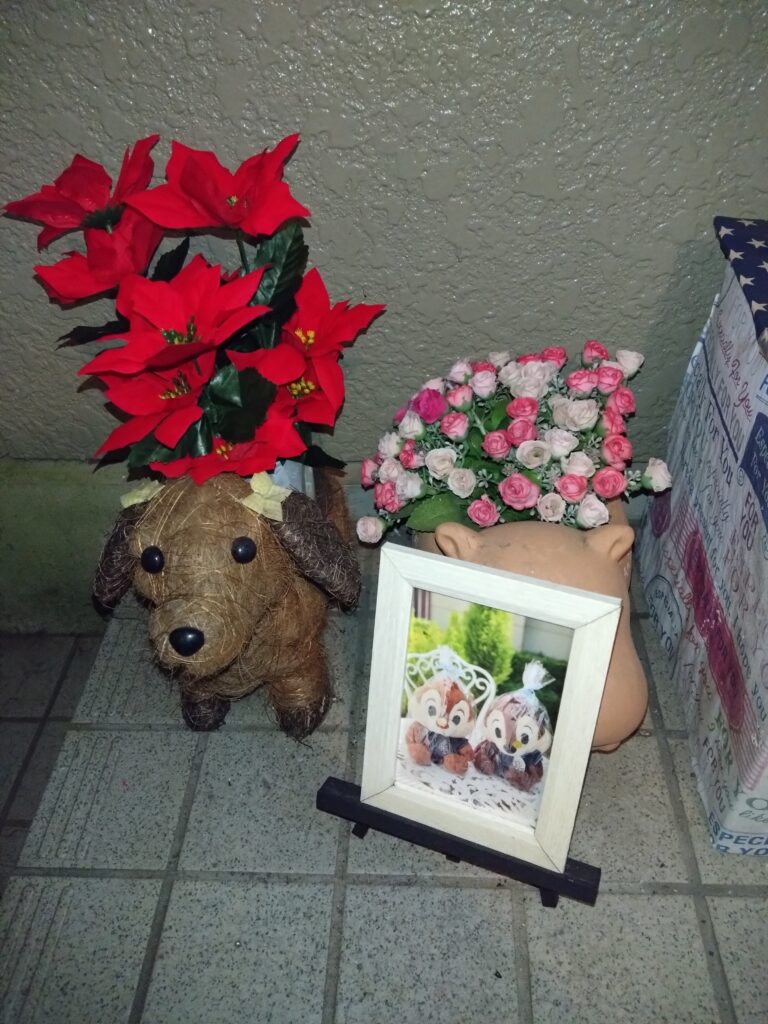 玄関を少し明るくしました。ポインセチアの造花を新しくしただけだけど。クリスマス前っぽくていい感じ🎅