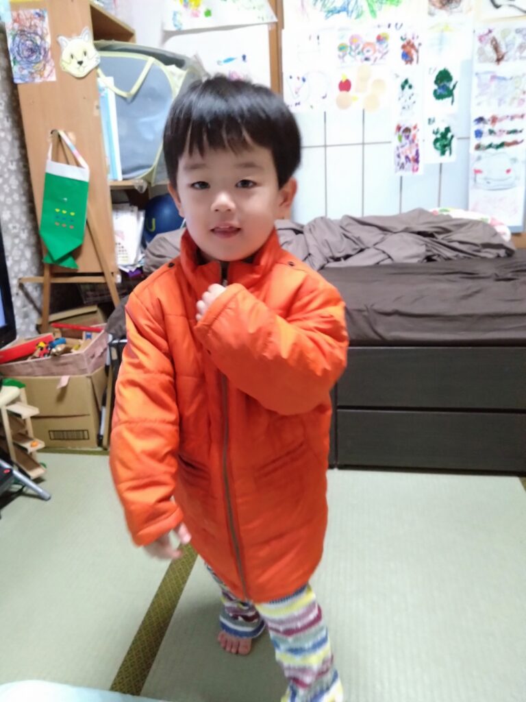 ラクマで頼んでいたダウンジャケット(保育園用)が、届きました。少し大きいですが使えそうです✨