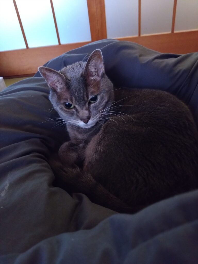 2階の和室で昨夜ねてたら、ミミちゃんかわゆす。
