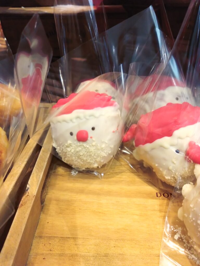 お土産に、ママがジャックインザドーナツで、ドーナツを購入。サンタ可愛いね!350円だってWOW。