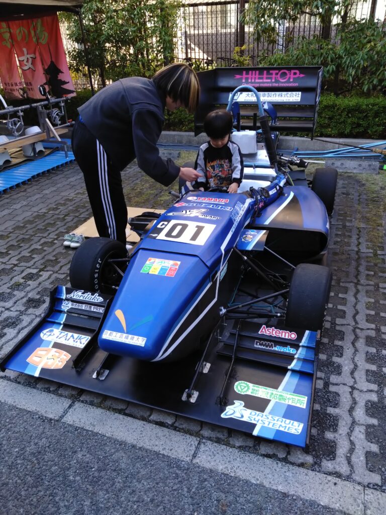 京都工芸繊維大学の学生フォーミュラ。友李くん興味津々。
