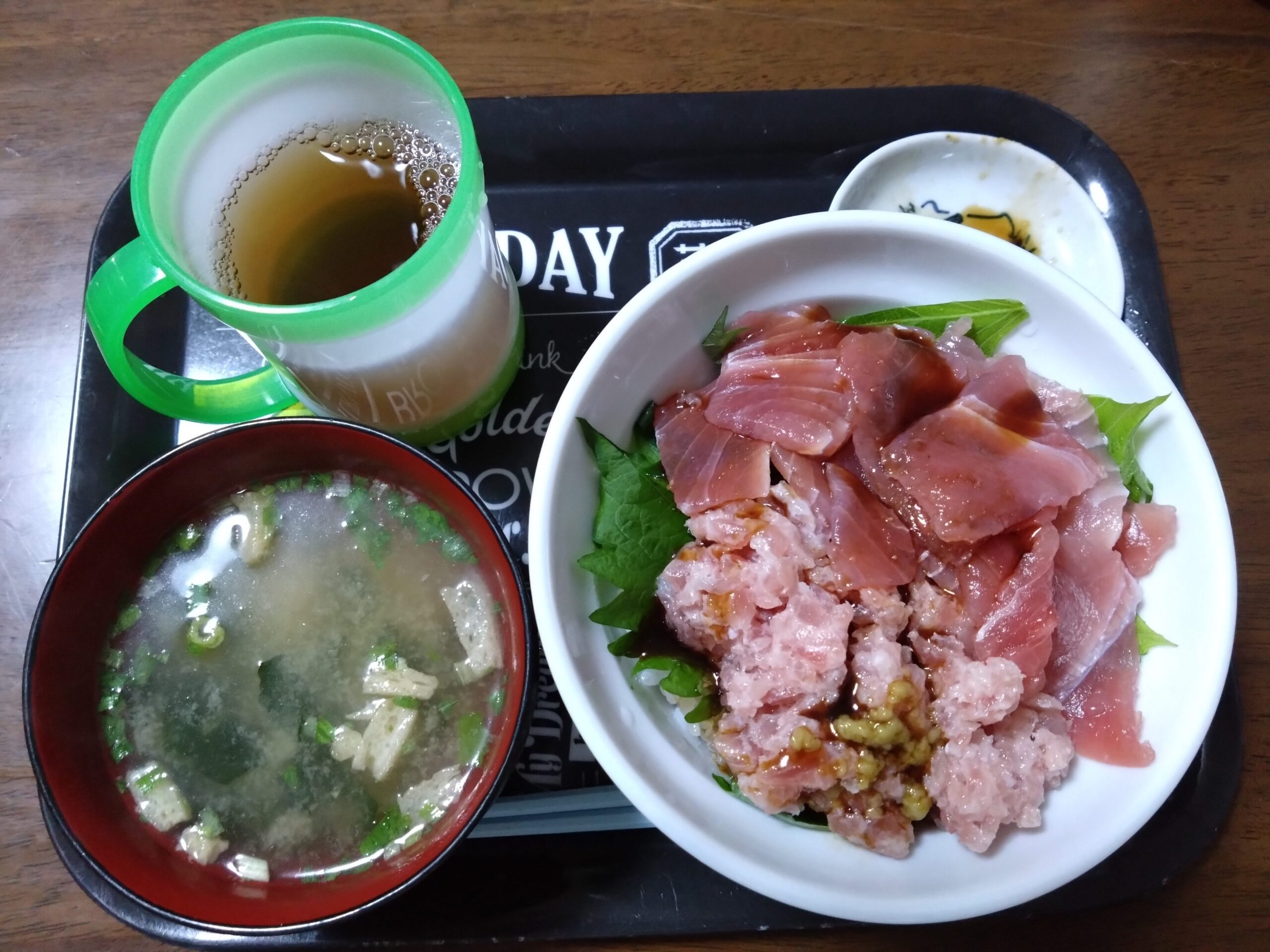 大人の夜ご飯は、大盛りパックのネギトロとマグロの切り身でした。美味かった🤤