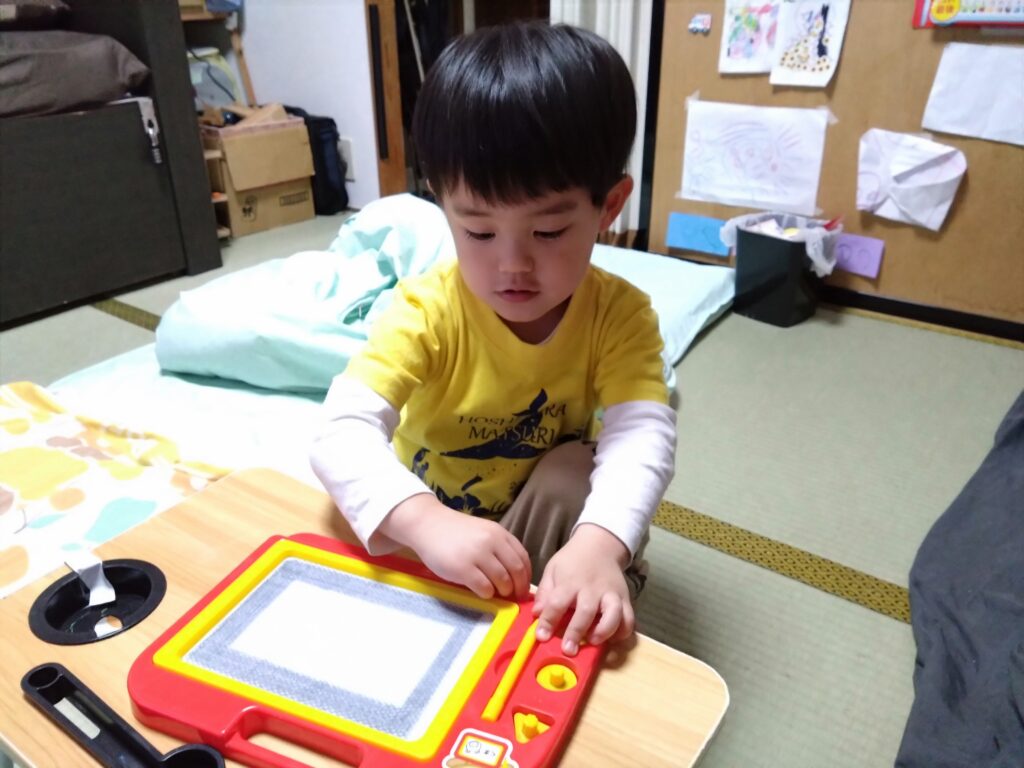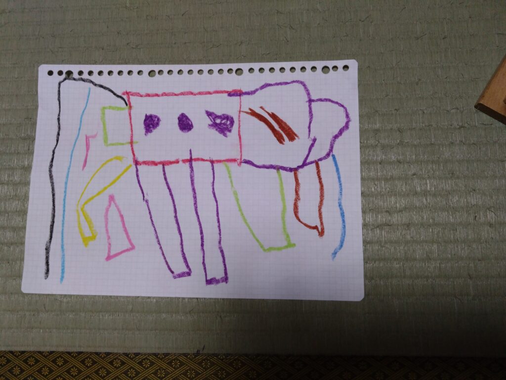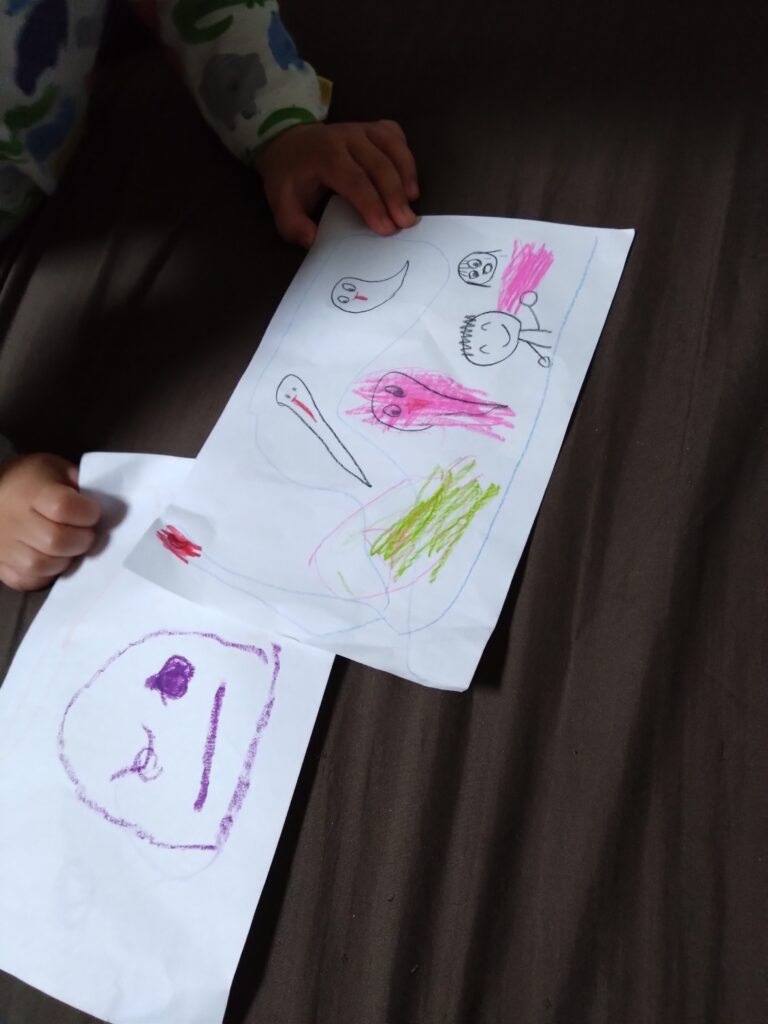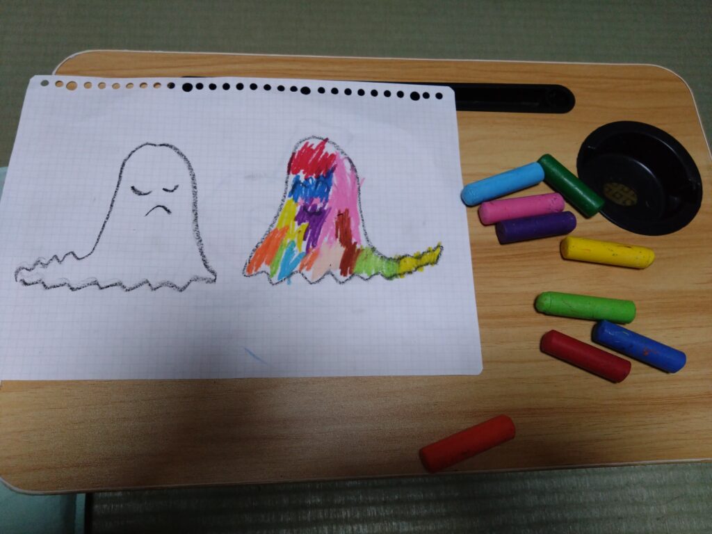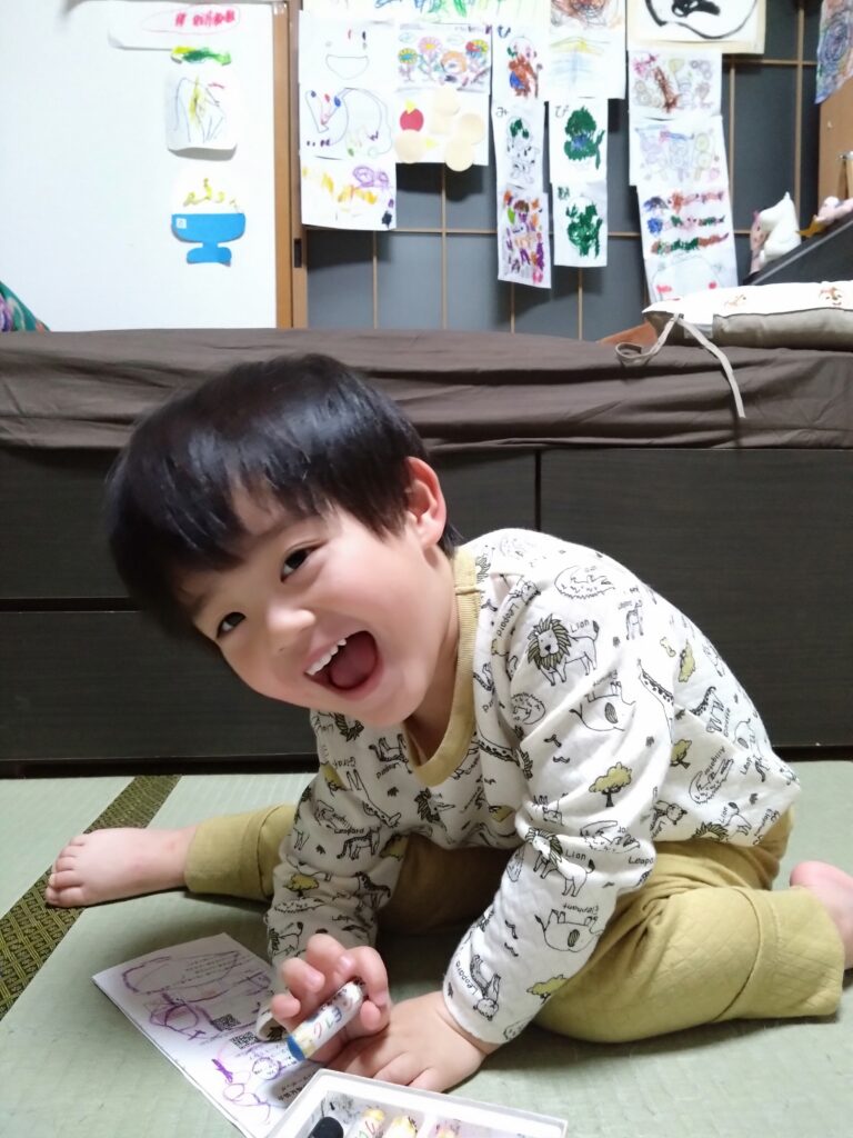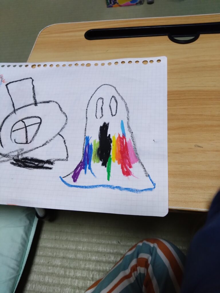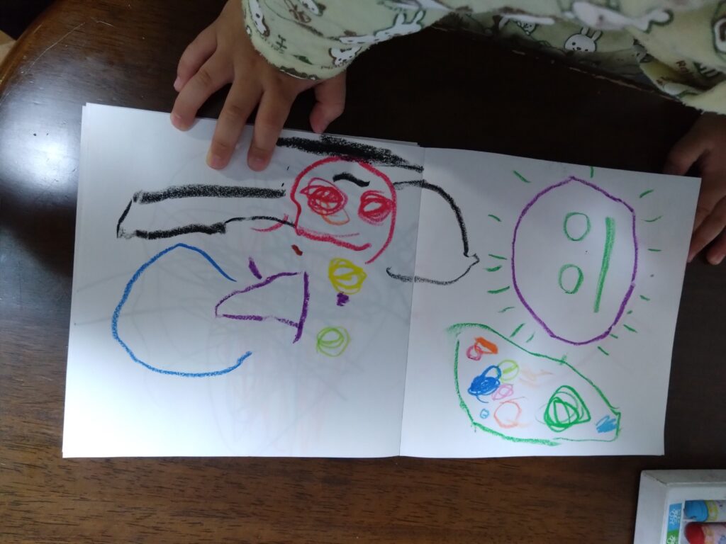 お風呂上がり後のお絵描きタイム。