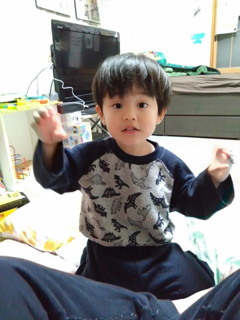 帰ってからの友李くん。ぞうさんダンスと太鼓ダンス。なかなかいい動きです。