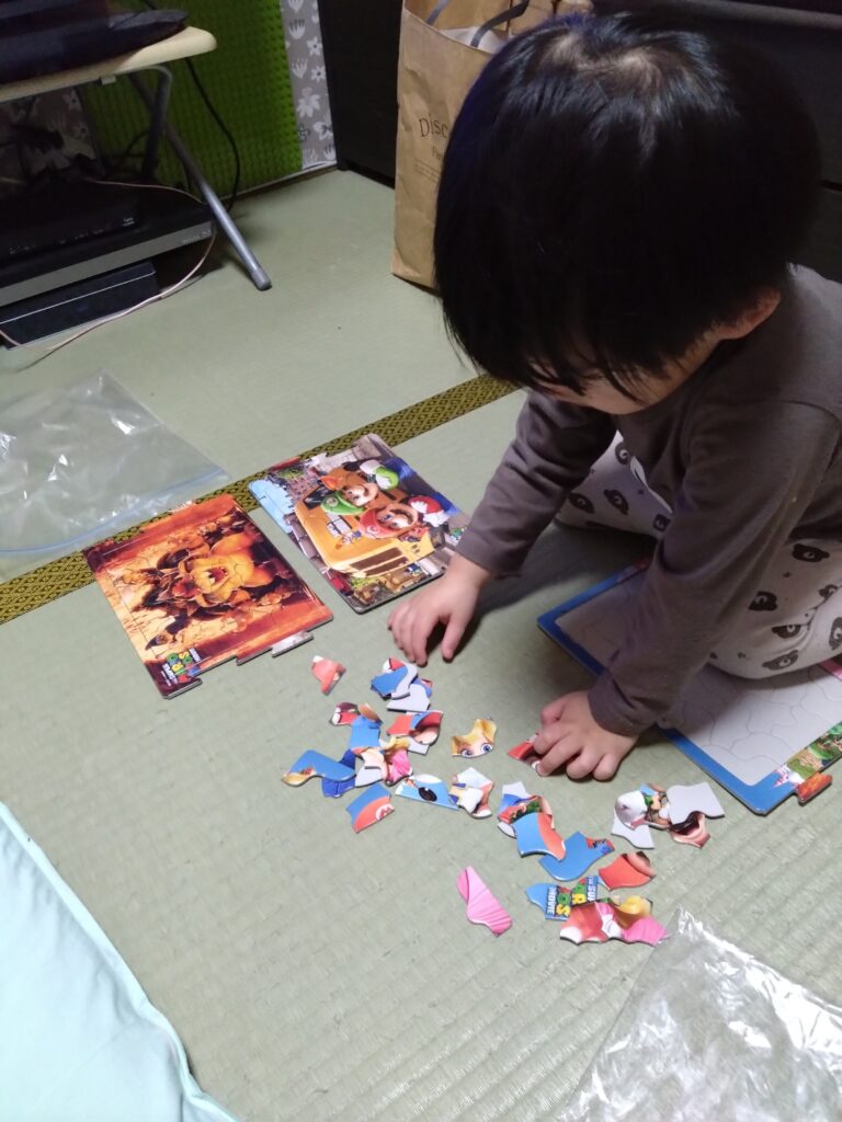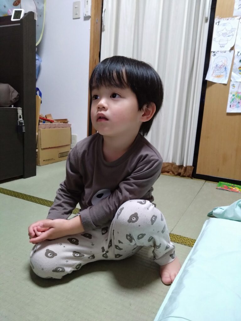 総合的な成長で言うと、3歳8ヶ月に対して、(曖昧な感じで) 半年遅れくらいかなぁという感じ。だがそれよりも、言語・運動が発達しているのに対して、社会性(友達を噛んだり、ルールが理解できない)が追いついていなくて、その乖離が心配。