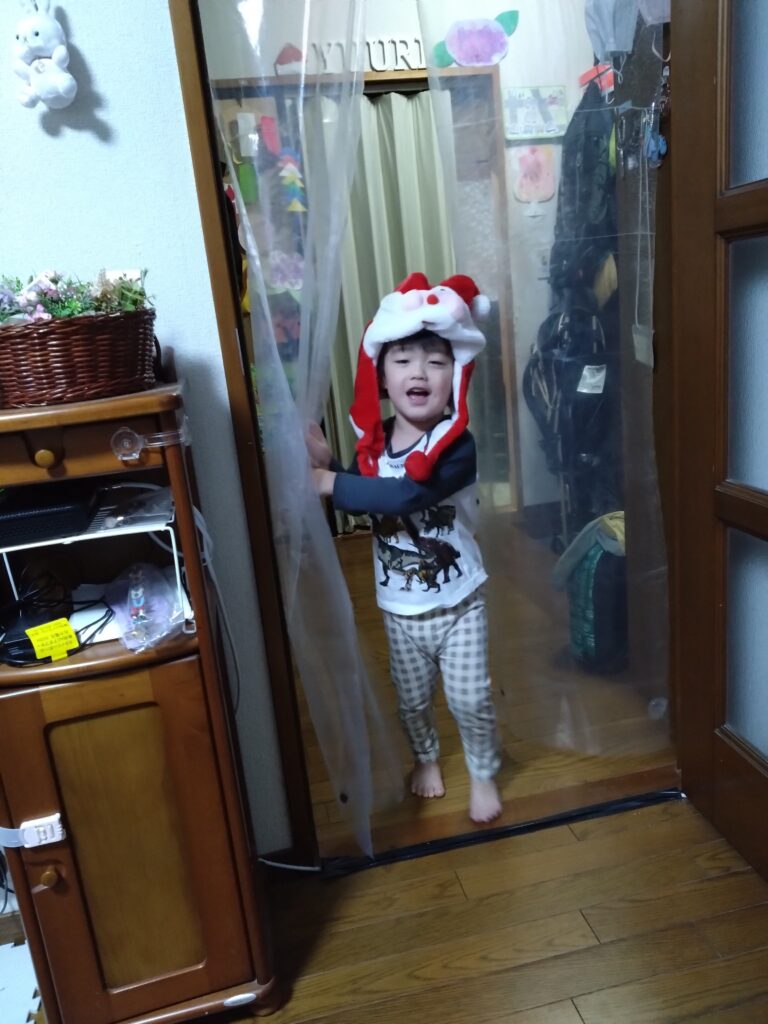お風呂上がりには、二人がかりでキンダベートと保湿剤を塗りました。しばらく続けなきゃです。12/24(水)に再診予定です。