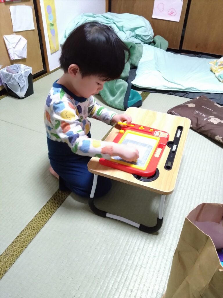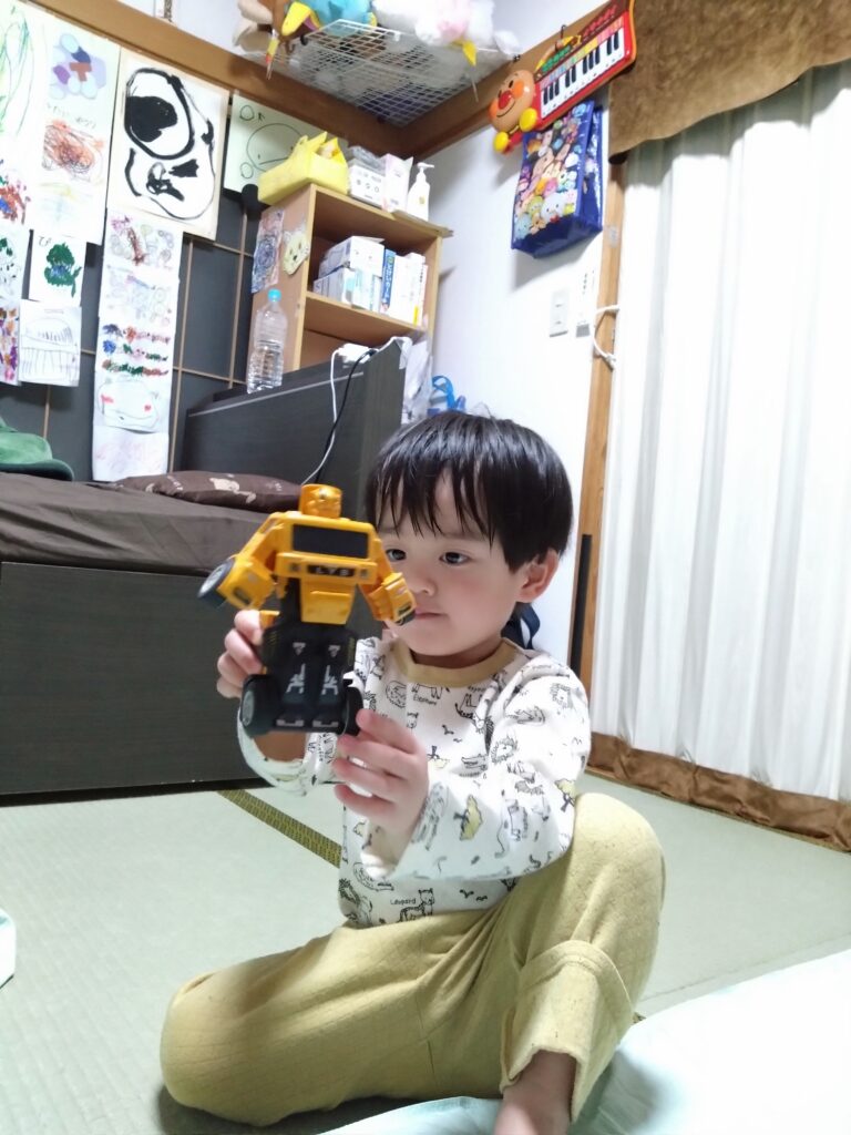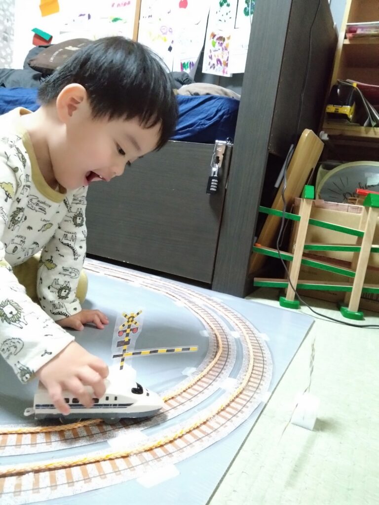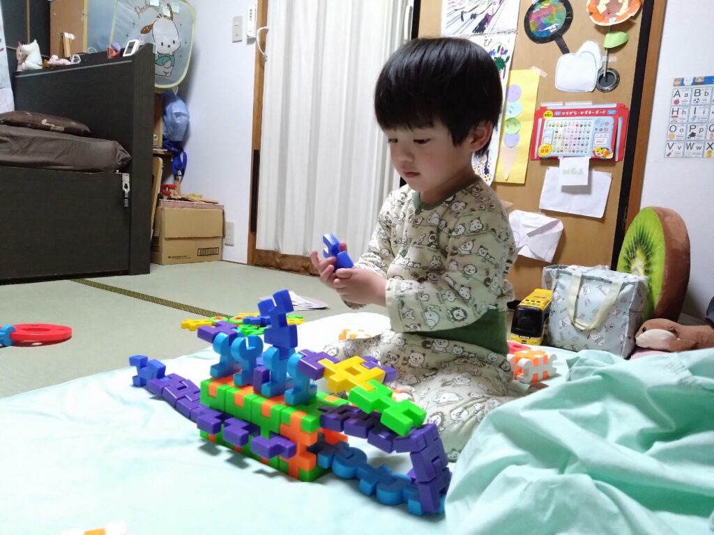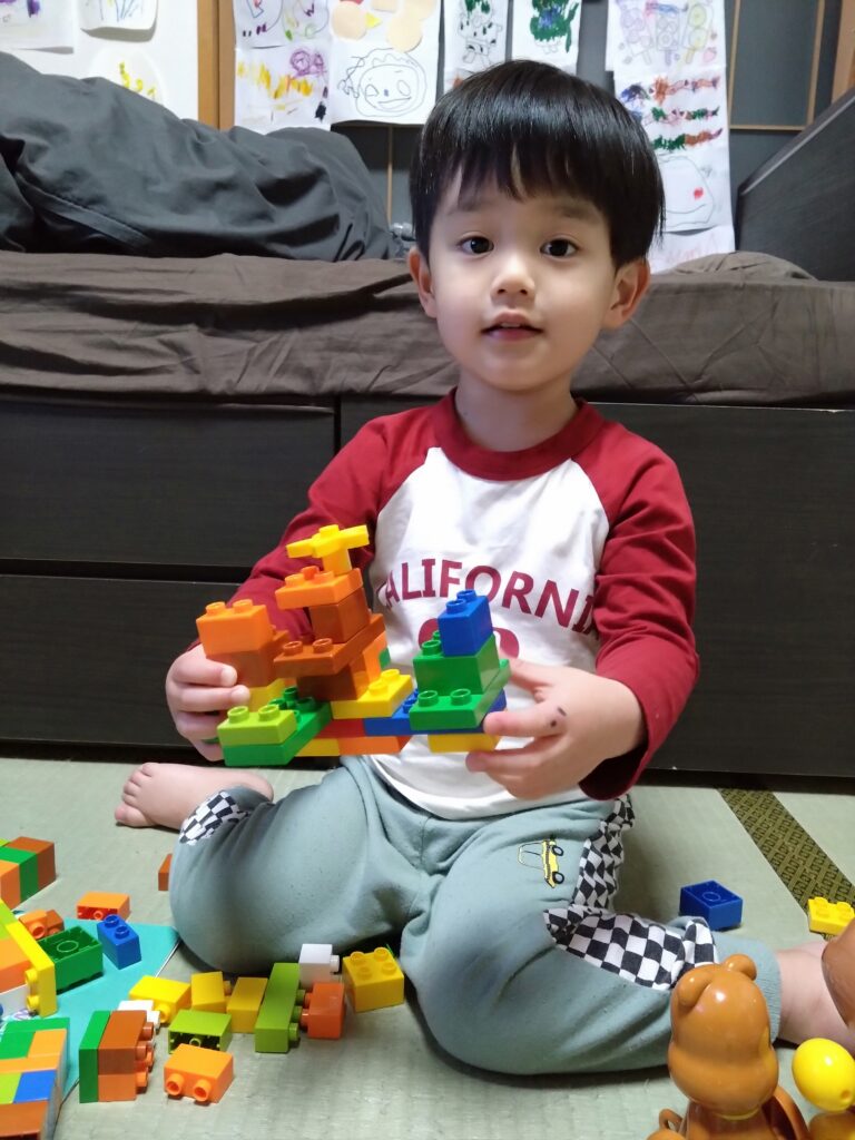 相当気に入ったのか、ずっと遊んでます(*^^*)。僕と同じくものづくりが好きになるかな٩(๑>▽<๑)۶