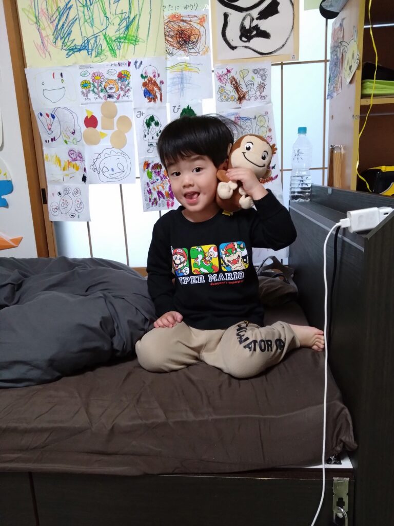 昨日から友李くんは、くしゃみが出ていたので園での様子が気になってましたが、鼻水が出てる程度で済みました。