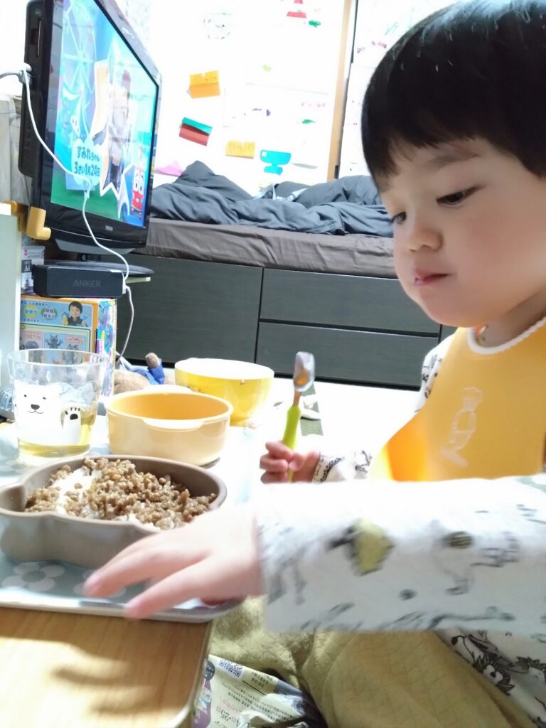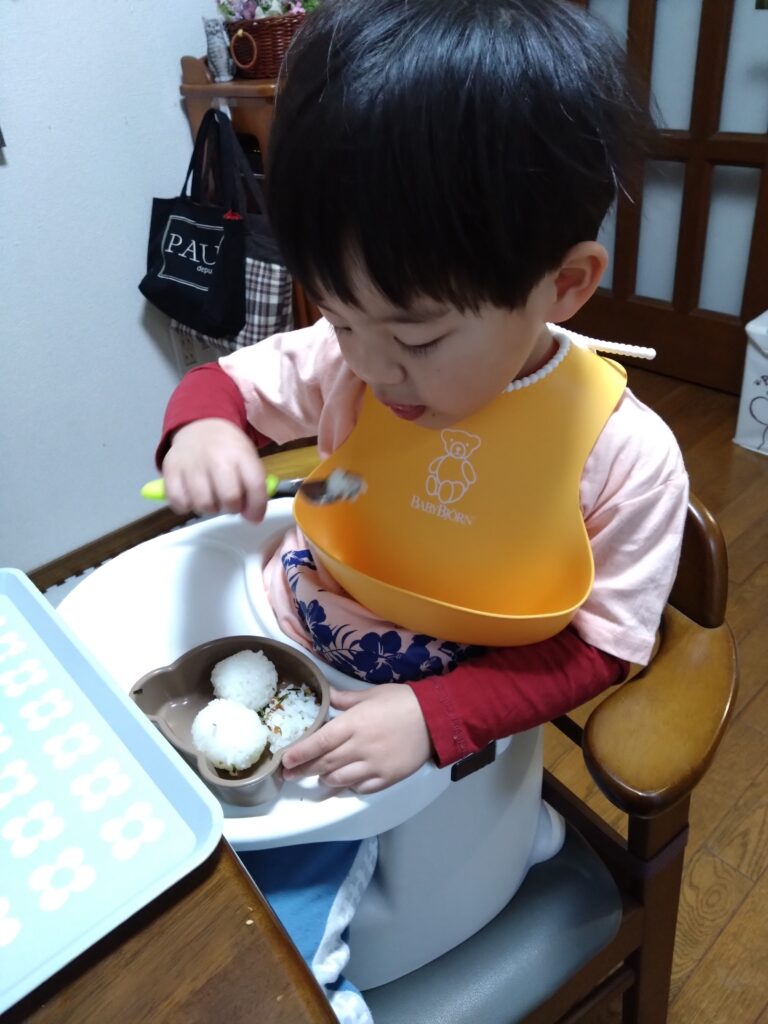 今回はおにぎり🍙弁当日。焼きそばの具のは完食したけど、唐揚げと卵は、おかずとご飯を少し残しました。先生には、具なしもOKと言われました😅