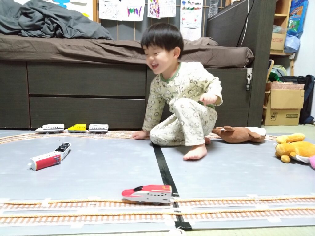 友李くんにE233系の新しい手作り電車をプレゼントしました。ラミネート使用で、水や汚れにも強く、いい仕上がりです。友李くんもとっても気に入ってくれました。古い2両はボロボロなのに大事にしてくれる友李くん。ものを大切にする心が養われると嬉しいな( *´꒳`* )